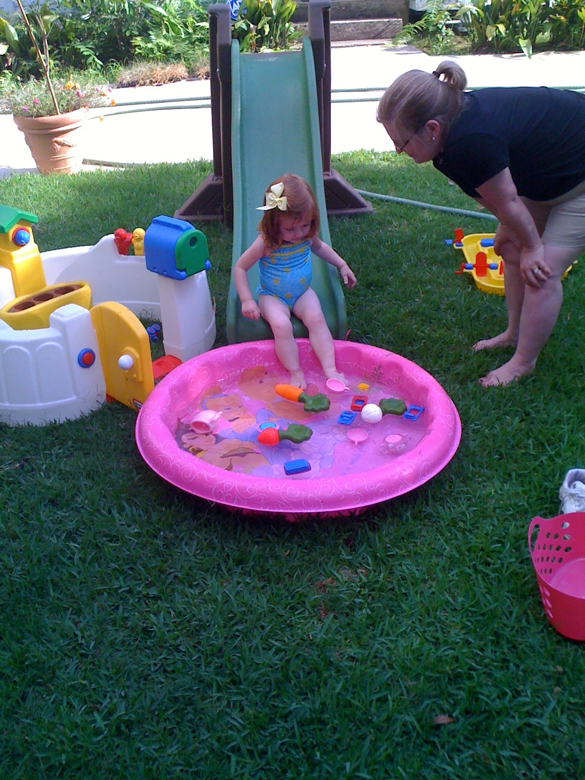 Genni wanted to "swim" this weekend so we got a new baby pool, pink with Disney "princess" Cinderella on the bottom - Genni picked it out herself (to my delight it was the smallest and least expensive!!).  She had a lot of fun!